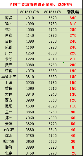 在鋼價(jià)上漲的帶動(dòng)下,鋼企盈利回升。據(jù)中鋼協(xié)數(shù)據(jù),一季度會(huì)員鋼鐵企業(yè)實(shí)現(xiàn)利潤(rùn)總額569.32億元,分月情況看,1月份利潤(rùn)總額208.17億元,2月份162.96億元,3月份195.26億元。而且從目前原料端的情況看,焦炭和鐵礦石庫(kù)存處于高位,大漲的可能性不大,但是鋼坯的庫(kù)存不斷下降,截止4月28日,唐山鋼坯庫(kù)存量為76.20萬(wàn)噸,下降13.50萬(wàn)噸,同時(shí)今日鋼坯追漲10元,報(bào)價(jià)3580元/噸,成本支撐依舊強(qiáng)硬。