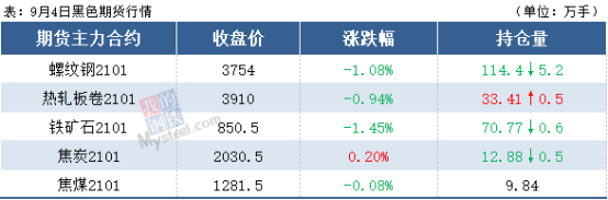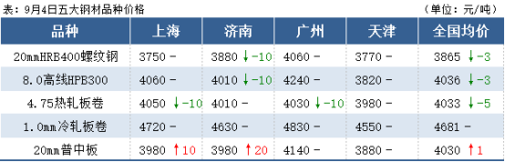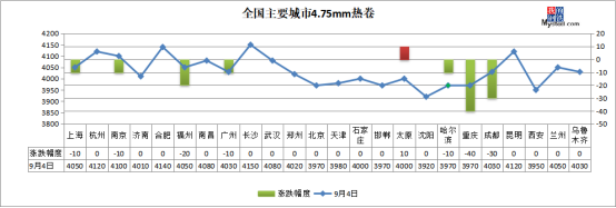 熱軋板卷:9月4日,全國24個主要城市4.75mm熱軋板卷均價4033元/噸,較上個交易日下跌5元/噸。今日黑色商品期貨市場低位震蕩,早盤現(xiàn)貨市場報價暫穩(wěn),受昨日夜盤跳水影響商家心態(tài)稍有走弱,盤中成交不佳,價格小幅下跌,午后市場情緒稍有穩(wěn)定,成交開始有所好轉(zhuǎn)。整周來看,供應方面:產(chǎn)量繼續(xù)維持高位,鋼廠端受原料成本以及利潤支撐,主動減產(chǎn)意向不強;庫存方面:社會庫存開始累庫,北材南下華東資源量加大,華東地區(qū)部分碼頭開始出現(xiàn)排隊集港現(xiàn)象,短期市場壓力華東大于華南大于華北。預計下周熱軋板卷或?qū)⒕S持弱勢震蕩運行。